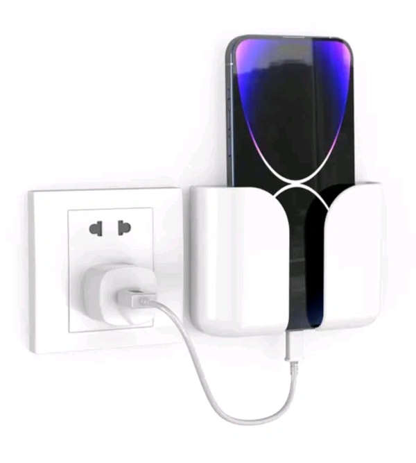 Wall Mounted Mobile Holder Storage Case for Phones with Strong Adhesive Strips | Wall Mount Mobile Stand/Multi-Purpose Stand for Phone Charging. (White).